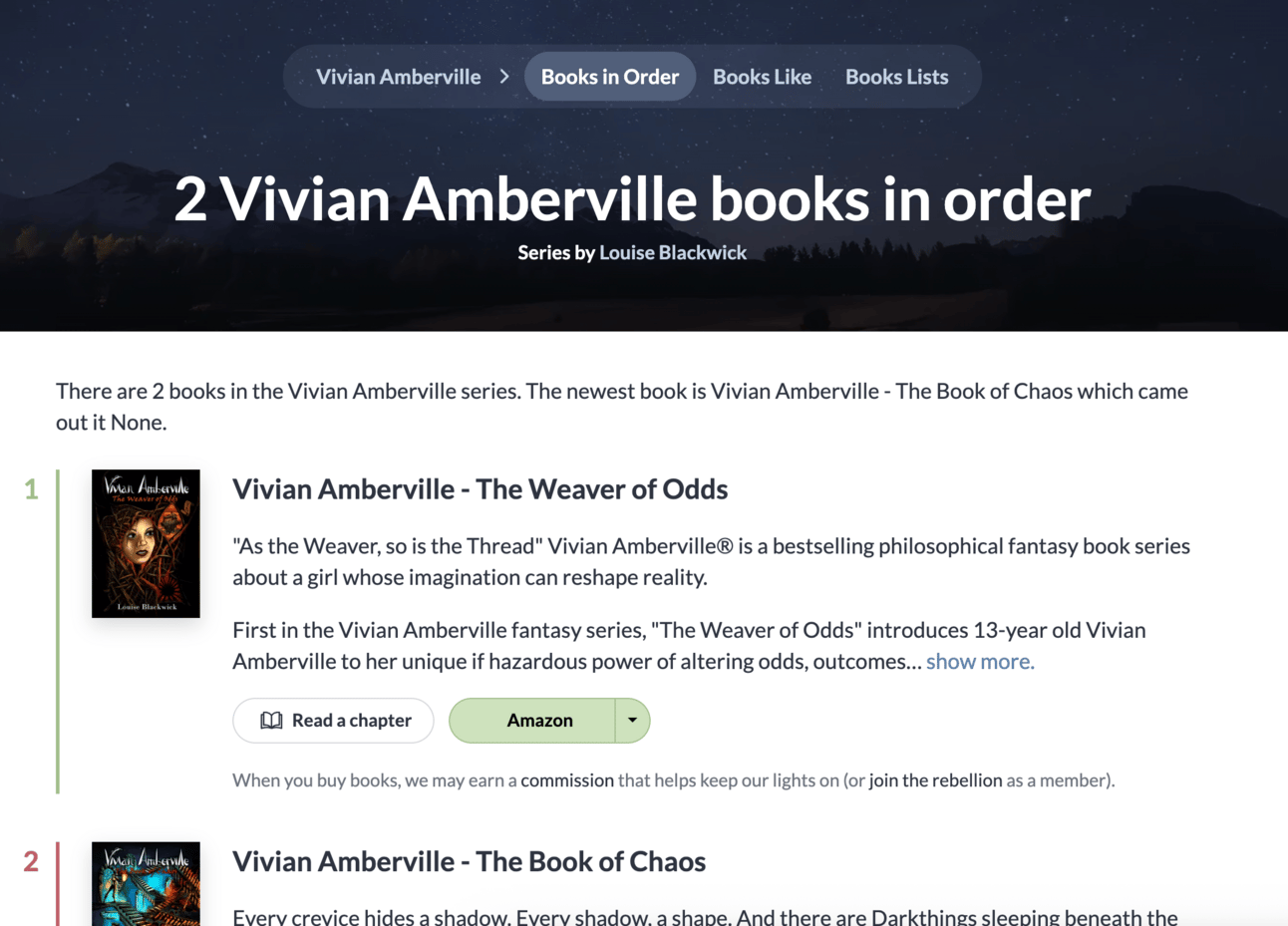 We will fix that soon if that page is blank for you. We've been creating the "books like" page using book recommendation lists connected to those books, so if your book series doesn't have any books connected to a list, it doesn't generate that. We will build a new feature to generate those via related genres if we don't have a connected list for now.